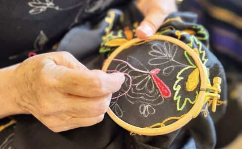 Démonstration de broderie et nouage de franges