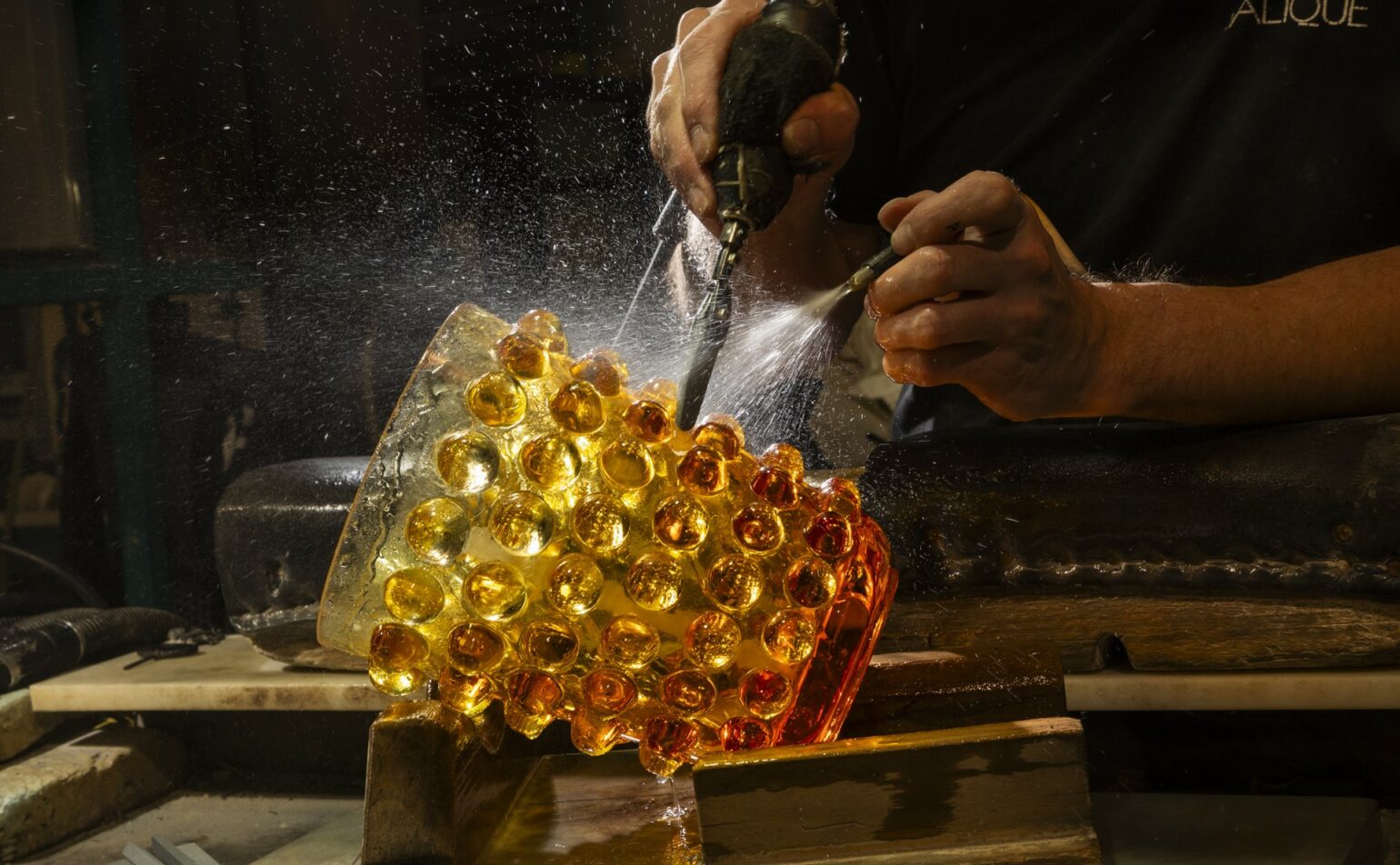 Pour aller plus loin encore, le musée propose chaque année une exposition photographique. Cette année, le choix a été fait de se concentrer sur les différentes étapes de fabrication d’un objet emblématique, le vase Mossi, dont le modèle a été créé par René Lalique en 1933. Nous n’avions jamais suivi une seule et même pièce dans son parcours au sein de la cristallerie, indique Véronique Brumm Schaich. C’est désormais chose faite au travers de 20 photographies réalisées par Karine Faby, qui est une des Meilleurs Ouvriers de France en photographie industrielle. Depuis le travail sur le moule pour que le motif soit aussi précis que possible jusqu’à la signature finale, en passant par la naissance de la pièce au verre chaud et les différentes étapes de choix, de travail à froid, chaque personne qui intervient est détentrice d’un savoir-faire particulier.