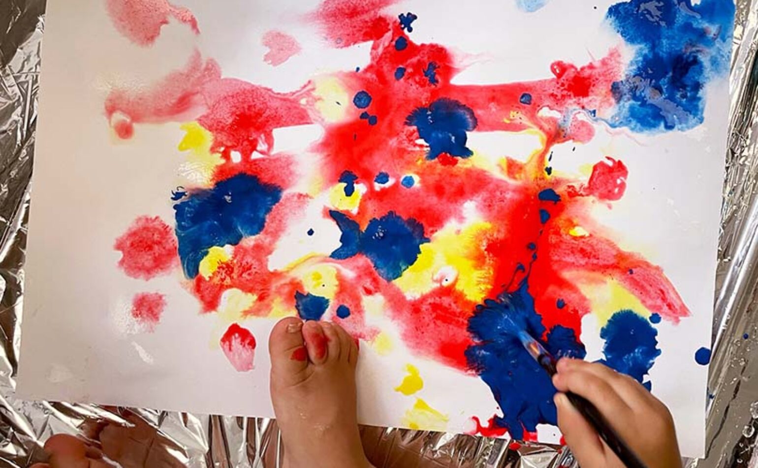 Ils expérimenteront librement en déposant les couleurs, puis observeront avec curiosité la manière dont elles se diffusent, se rencontrent et se mélangent. Peu à peu, des nuances nouvelles apparaitront et des formes inattendues prendront vie sous leurs yeux.