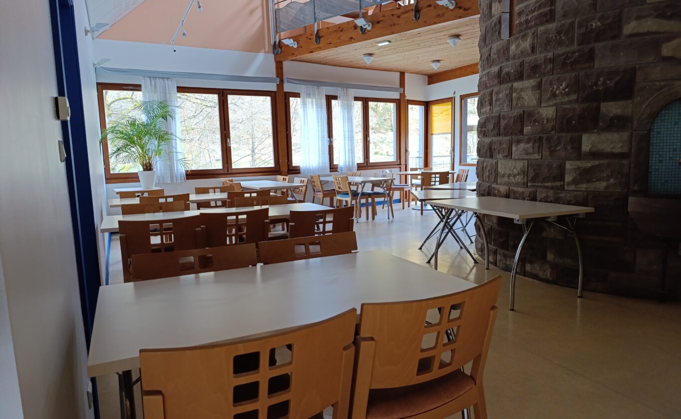 Les accompagnateurs disposent d’une salle de repos en surplomb du réfectoire.