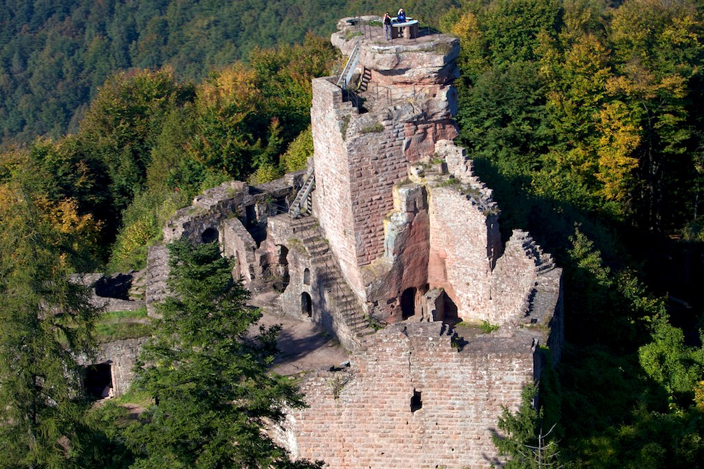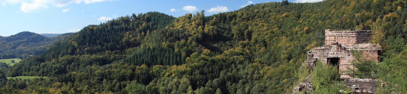 Vue depuis le Château du Wasigenstein, XIIIe siècle, sur la Traversée du Massif des Vosges (Niedersteinbach)