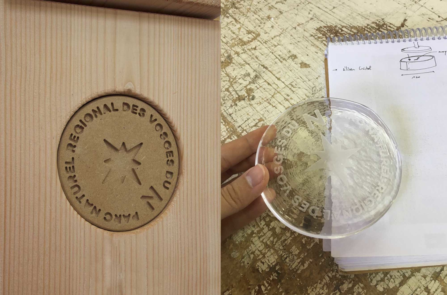 Gamme mobilier Vosges Nord – Demi lieue par CYNARA _ Médaillons en verre