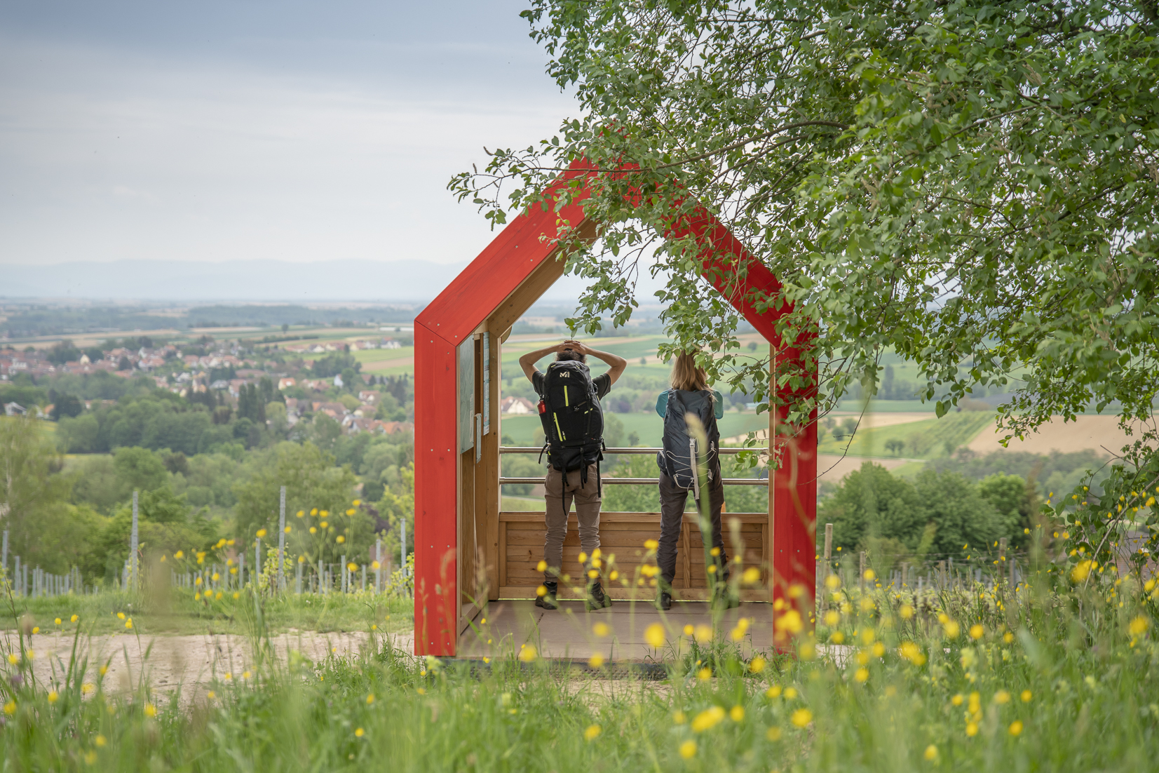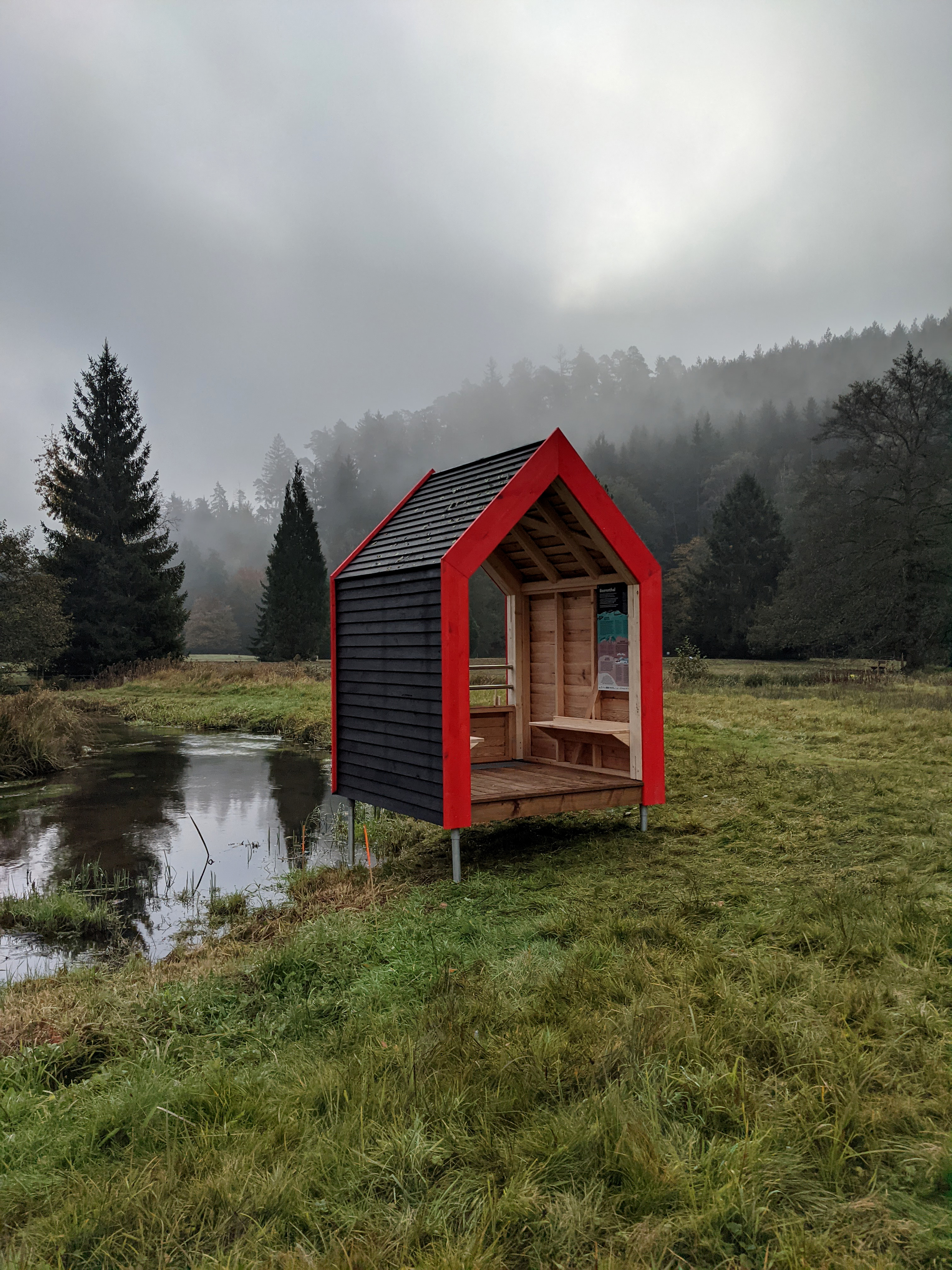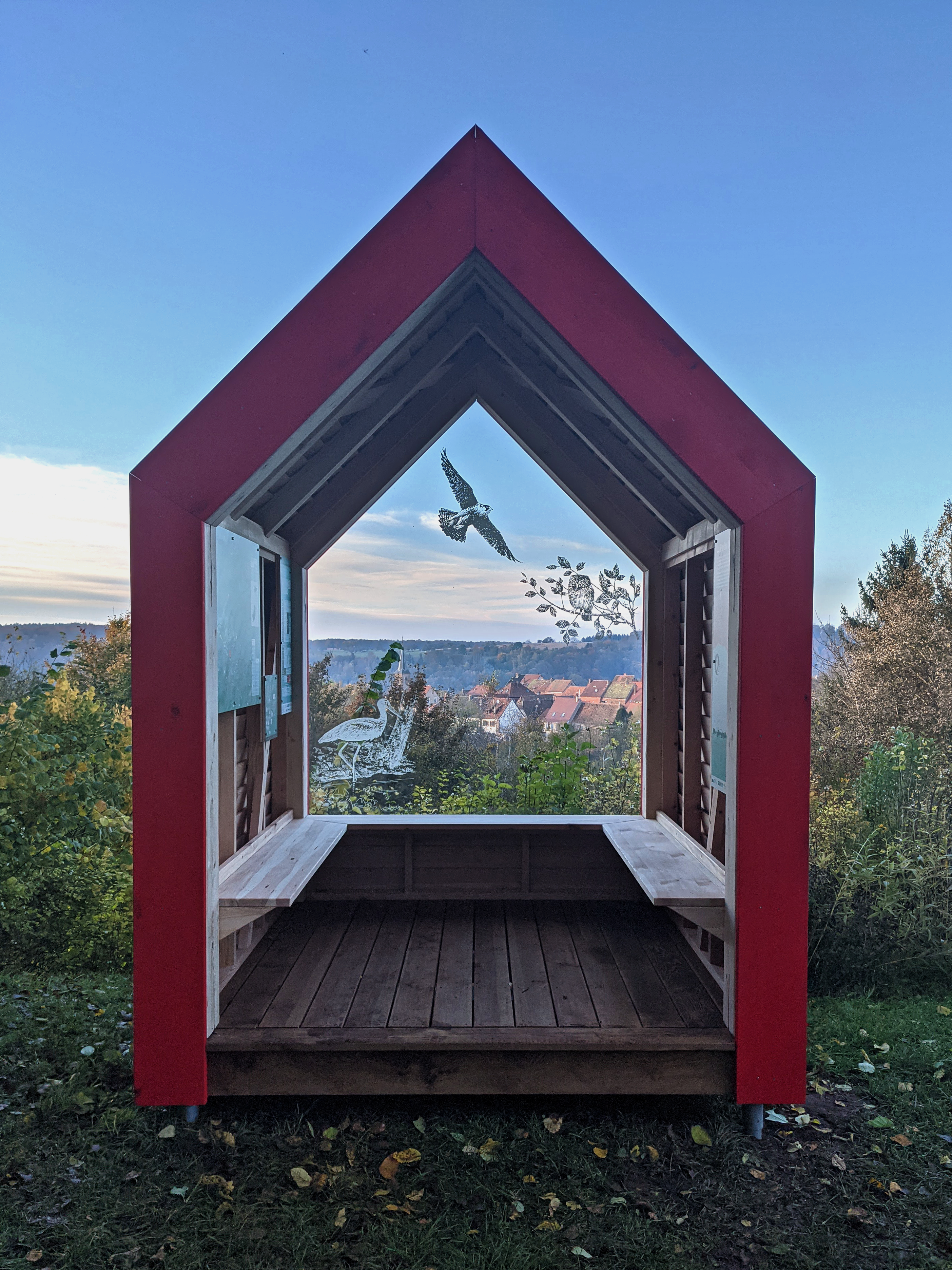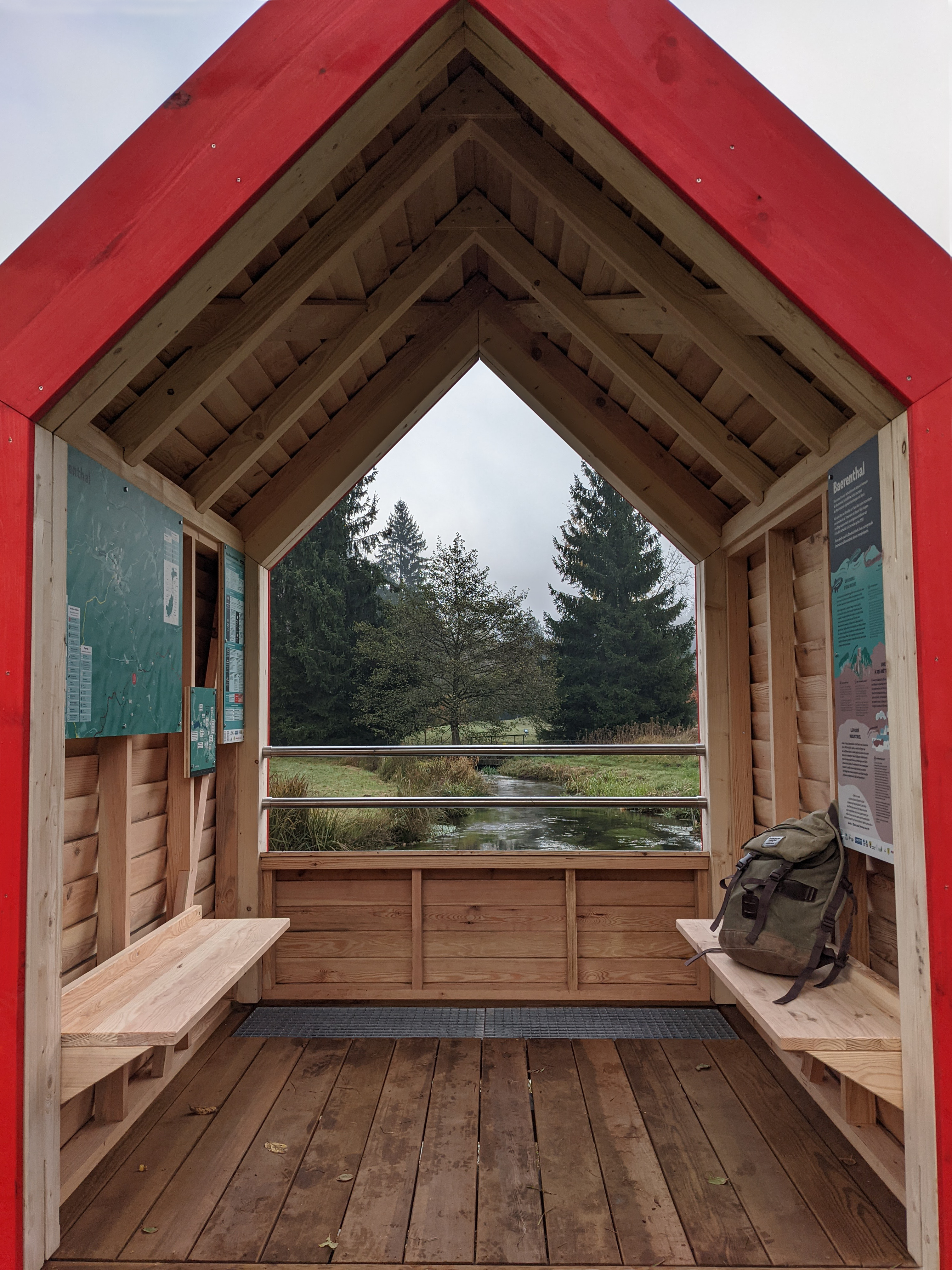 Une halte en bois local et avec une couleur rouge identitaire